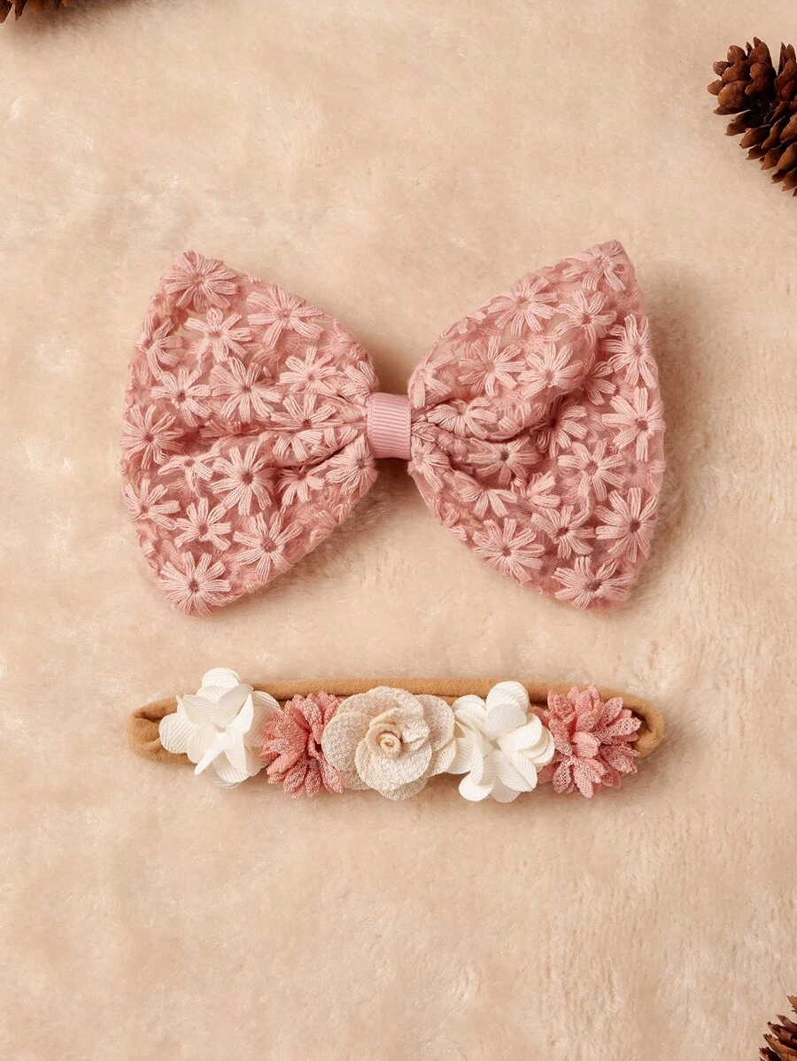 Inclui 2 fitas para a cabeça em elástico delicado cor-de-rosa.