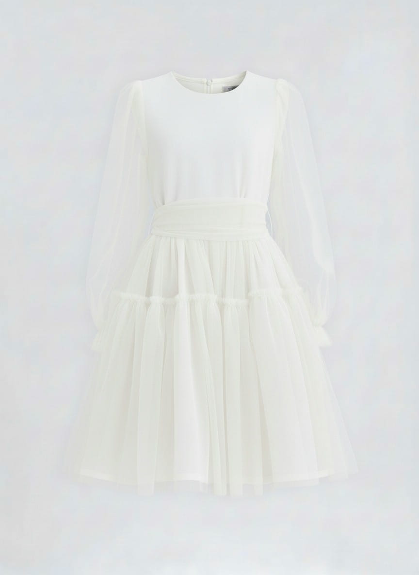 Há momentos na vida de uma menina que merecem ser eternizados. O primeiro baile, a comunhão solene, o casamento da tia preferida. Este vestido branco de menina não é apenas uma peça de roupa – é a promessa de uma memória inesquecível, tecida em tule delicado e brilho discreto de marfim suave.
